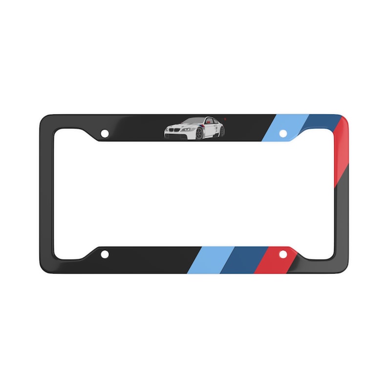 Adorned with the iconic BMW M series car and sporting the classic motorsport colors, this frame exudes a touch of racing heritage. Its sleek and sporty design adds a touch of sophistication to your vehicle, turning heads everywhere you go.